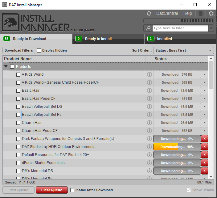 Cập nhật các chức năng phụ sao cho DAZ Studio Pro bằng cách sử dụng DAZ Install Manager