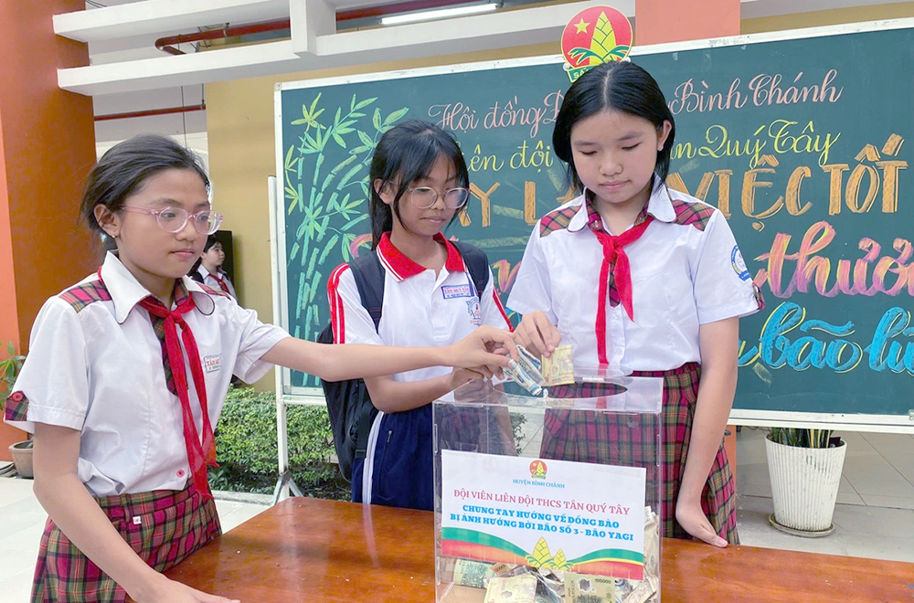 Ngay sau thông điệp kêu gọi của các cấp bộ Đoàn - Hội - Đội, các bạn học sinh, đội viên, thanh niên… đã hưởng ứng đóng góp tại các cơ sở - Ảnh: THÀNH ĐOÀN.