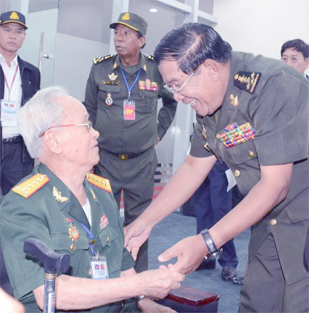 Thủ tướng Hun Sen gặp gỡ một cựu chiến binh Việt Nam, nhân chứng lịch sử tại Bình Dương (ảnh: QĐND).