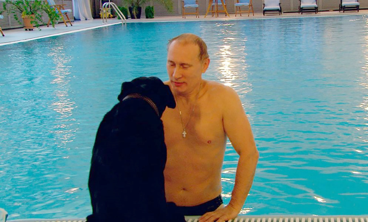 Ở góc máy khác, ông Putin đến hồ bơi vào sáng sớm, người bạn đồng hành duy nhất là chú chó Labrador màu đen mang tên Koni.